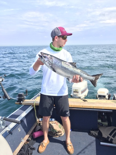 Copilottruman Posted May 24, 2017 Posted May 24, 2017 Started the day off a bit later than we wanted but I keep forgetting how early first light is. Went off nicks earlier report of possible kings by the piers so at 7am we set in front. Not a few moments after setting the first downrigger it took off! Landed a very solid king. Made an quick circle and again another king! However this one unbuttoned due to poor netting :/. We kept making circles in 30-35 fow and had 5 fish in 2 hours in front. Decided to pick up and then run out to 110 where we immediately took another very solid king. We stayed at that depth all morning taking another 5 fish until the waves built due to the approaching weather. So here's what worked. Direction didn't really matter. Going south 2.5 SOG worked best. Shallow: BLL hawg wild rigger 15 & 20 - 2 kings 1 coho 2 shakers Deep: BLL electric lemonade MAG - 1 coho Rigger 71 with white flasher UV aqua fly - 1 king Low Dipsy 131 back silver flasher UV aqua fly - laker/ king 300 cu SOG froggie 1 king Sent from my iPhone using Great Lakes Fisherman mobile app 7