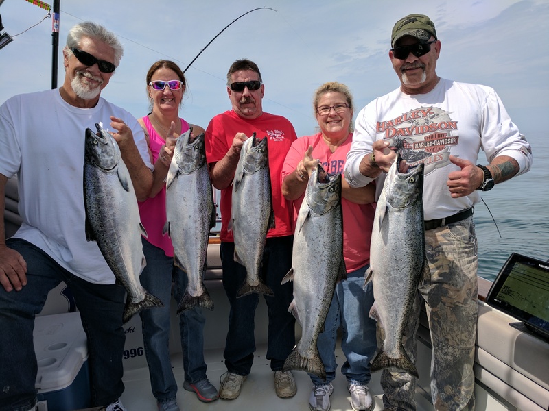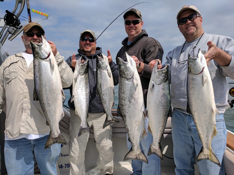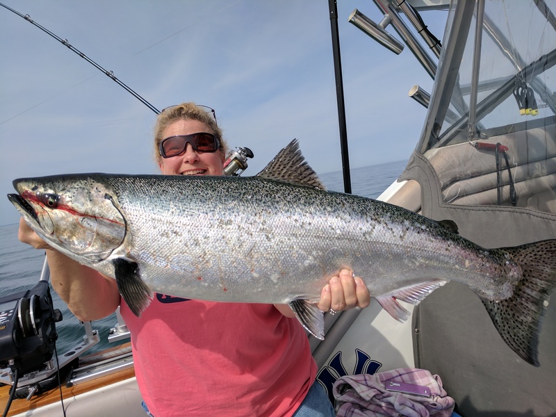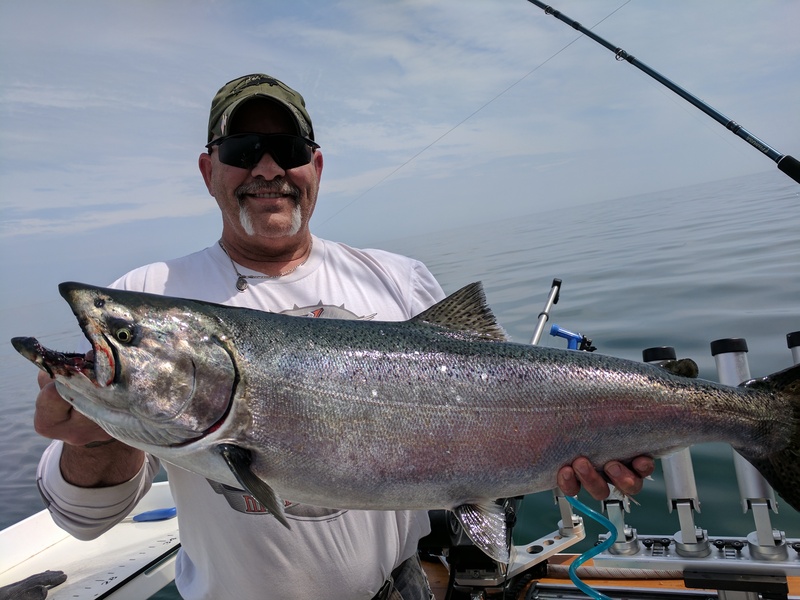 Yankee Troller Posted May 25, 2017 Posted May 25, 2017 Yankee in Wilson 5/22 & 5/23 Yankee Troller in Wilson 5/22 & 5/23 After a few middle of the pack tourney finishes we got back to chartering. Here are some reports from the last few days. May 22nd Brian and his gang fished with us today, and they were rewarded with a quick limit of Lake Ontario King Salmon! We pulled Familiar Bite meat on our A-TOM-MIK coppers in 300, 400, and 500. On our divers and our Cannon Downriggers we ran Dreamweaver Spin Doctors/A-TOM-MIK flies. Our top producers were Mt. Dew/Big Fin Glow, Two Face/Glow Hammer, Marvs Big Fatty/Ultra Green Glow. We also had a frostbite on our chase rigger with an Orange slurpee SS free sliding that took a few fish. Riggers parked from 60-150' and divers from 150-240 on a 2 setting. A lot of 2yr old Salmon today with 3 Coho, but we did grab a nice 3yr old 18lb King. May 23rd Warren and his wife joined us for a day of fishing with another couple that is soon to be wed. The Niagara region didn’t disappoint! We ran the same program that worked for us the day before, and it rewarded us with a great box of fish. We fished Familiar Bite meat on 300, 400, and 500 A-TOM-MIK coppers, Dreamweaver Spin Doctors/A-TOM-MIK flies on our divers and our Cannon Downriggers, and a pair of spoons on our chase rigger. Those spoons being a frost bite on the main line with an orange slurpee SS free sliding. Our top flasher fly combos were Mt. Dew/Big Fin Glow, Two Face/Glow Hammer, and Marvs Big Fatty/Ultra Green Glow. Our riggers were parked 60-150 down and our divers were out from 150-250' on a 2 setting. We had better quality today with more 3yr olds showing up in our box. We had two fish at the 17.5lb mark.