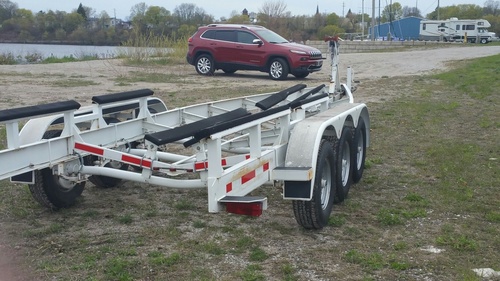 Michael Coe Posted May 31, 2017 Posted May 31, 2017 Tri axle boat trailer W/electric brakes Loadmaster trailer with electric brakes. 3- 6000# axles 3 axle electric brakes . GVWR is 16,002 lb. Used for a 30 ' inboard, twin engine Sea Ray. Lower bunks are adjustable so could handle other boats. This is a steel frame 8" channel trailer it is NOT Aluminum like many newer trailers. Asking $4,500.00 and will consider reasonable offers.