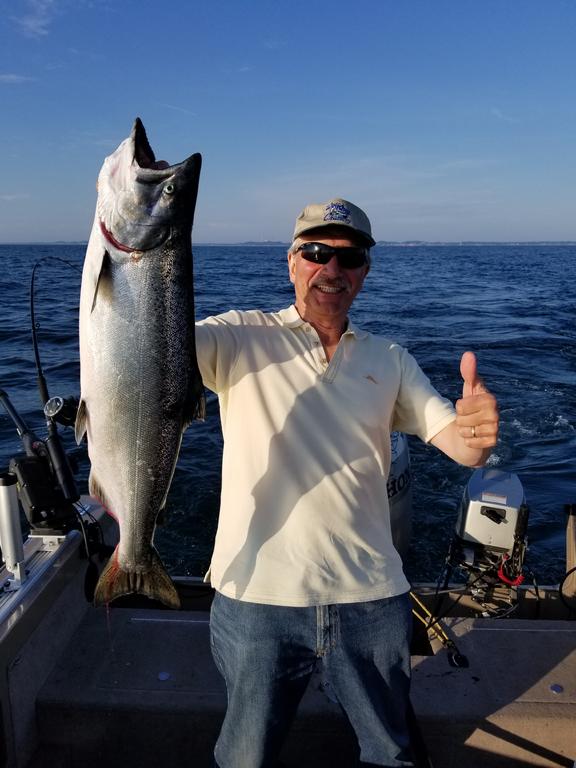 jvern Posted July 7, 2017 Posted July 7, 2017 Holland 7/6 7-930 pm Went 4 for 6 last night with two steelhead, one Laker, and one nice king. We ran north then fished mostly on a south troll. All fish were caught in 130 to 145 fow with 135 to 145 being best. Downrigger set at 75' with the SWR and a UV hey baby spoon took the Laker. Meat rig on a dipsy out 170' took the bigger steelhead. The other dipsy with a white pro troll flasher and pickled sunshine fly took a 14lb king. Last steelhead came on a mixed veggies free slider on the port rigger down 72'. Great evening on the water 7
