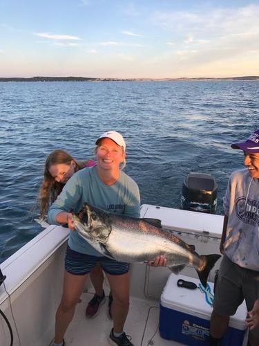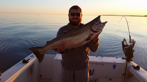Mega Byte Posted August 1, 2017 Posted August 1, 2017 Pentwater, 7/30 and 7/31 My son and I went out for a quick trip Sunday morning. We had lines set by 6. We had to pull them at 8:30 because we had to get back to help my wife pack up and get checked out of the campground. Oh what a morning! It was dead flat calm. We watched schools of bait fish on the surface and big fins getting after them. We marked a lot of fish on the sonar which was a new for me. (long story short - if you ever have a sonor that marks fish on inland lakes but not Lake Michigan, get a new transducer. Mine would mark bait balls, bottom and cannonballs on Lake Michigan, but no arches. On inland lakes I marked fish all day long. That issue was fixed with a new transducer.) Anyway, we finished 5 for 8. All were kings and we threw one of the five back. Biggest was 22 pounds. We fished 80 to 110 fow. Notes are in the boat as far as lures and depth. The surface temp was cold - 55 degrees where we were fishing. Sunday PM was a different story. We went back to the same area and found surface temps to be 68 degrees. The fish were scattered. We managed a 4 for 6 night, with two steelhead, a coho and a 23# king. Very different from the AM trip. We had hits in 170 - 150 fow, but marked about 2% of the fish that we marked Sunday morning. Monday PM, 0 - 3. Had trouble finding the fish. Missed a steelhead in 170 fow down 45 on a rigger with a blue dolphin spoon. It hit the spoon and went vertical out of the water and we lost it on a big jump. Had a big rip on a dipsey diver down about 40 feet with a green spin doc and meat rig. This was a good fish and he got off when he ran into the 300 Cu. We worked 170 to 125 fow with not much to show for it. As we were pulling lines we got into 110 fow and saw a lot more fish on the sonar. I guess we should have tried in closer sooner. Sorry about the lack of specifics...the notes are in the boat. Hopefully we'll be back out there this weekend. 3 1