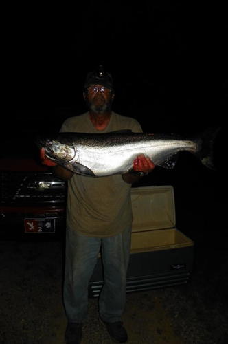 Martin1950 Posted August 10, 2017 Posted August 10, 2017 South Haven 8-9-17 PM I over slept by 2 hrs so I kissed off an AM run. Cleared the river at 1530hrs headed West. Marked a lot of fish in 85fow so I made a big loop and started my 3 rod spread with nothing to show for it. At 1730hrs in 158fow my big white paddle w/ an old unknown grn&blue fly, 30b x100dwn rips off. Boxed a nice 17.5# She-King. East bound at 1800hrs in 160fow my Mountain Dew Spinnie w/ an old Howie green crinkle on the other DR 20b x 90 dwn got slammed resulting in a 15# King in the box. It only took about one minute after the re-set for it to buck again. Damn it, should have checked the 50# fly harness, it broke about half way down. West bound in 172fow at 1915hrs the Mountain Dew spinnie w/ a green glow squid 15b x 90dwn got smashed. One thing about a 24.5# King salmon, she goes anywhere she damn well pleases. Now I have 250x45# worth on CU mangled up on the floor of the boat. At 2010hrs and 2030hrs I finally box two medium weight Greasers making it 5 for 6, one on the big paddle and 1 on the spinnie. Stopped at the migrant camp down the road and donated the 2 lakers, they think I's Santa. Since I’m real hard of hearing I broke out 2 OLD reels w/ very loud bait clickers for the DR’s since I was fishing solo. Yep all 5 of these fish were fought and landed with Old Penn 209’s. Martin 6 1