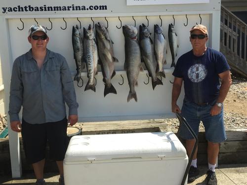 Dr Hook Posted August 16, 2017 Posted August 16, 2017 Holland 8/16 AM Not a bad day out on the lake today finished 7 for 9, 4 coho, 2 kings and a laker. Set lines at 95 fow off sliders, first hit came in 127 fow. Worked out to 150 in front of slider and began heading north from 160 to 180. Finished in front of the Holland channel with a double on coho 10 lb and laker 18 lb, both boat records for me. Fish seemed to come in clusters after about 2 hours of trolling we'd get a flurry and put a few more in the box. Trolling speed was 2.3 to 3.0 at the ball and fish came on every direction of troll. Wire divers with UV Crush spindoctor and Big Weenie Last Brunch port and starboard set on 1.5 and back 400 and 500 respectively took 17 lb king and the big laker. Green/Chrome Spindoctor with green Mylar fly on rigger down 70 took one and again when dropped down to 80. 10" UV crush spindoctor with Last Brunch on rigger 90 down took a hit but it got off. 225 copper with Mr Valium spindoctor and Rapture Northern Lights took a 12 lb king. Rigger down 110 with Moonshine Silver crush took one, same rigger with Mixed veggies on slider also took a hit that came off. Big coho came on 300 copper with another UV Crush Spindoctor and Big Weenie Poofster fly. 6