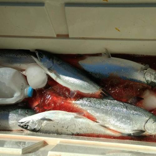 First troll this year for me. We started on the beach and trolled south to the state line in 10-20 fow and hit a couple but only boxed 1. Turned out and back and had a slow pick in 30-36fow. Fish came best on red blk thin fins off boards 50-80 ft back. A stinger starburst took a couple on a high diver back 15ft. An orange gold double jointed rapala on boards also took a couple. Water temp  was 36 degrees.  We ended up with 13 cohos.
