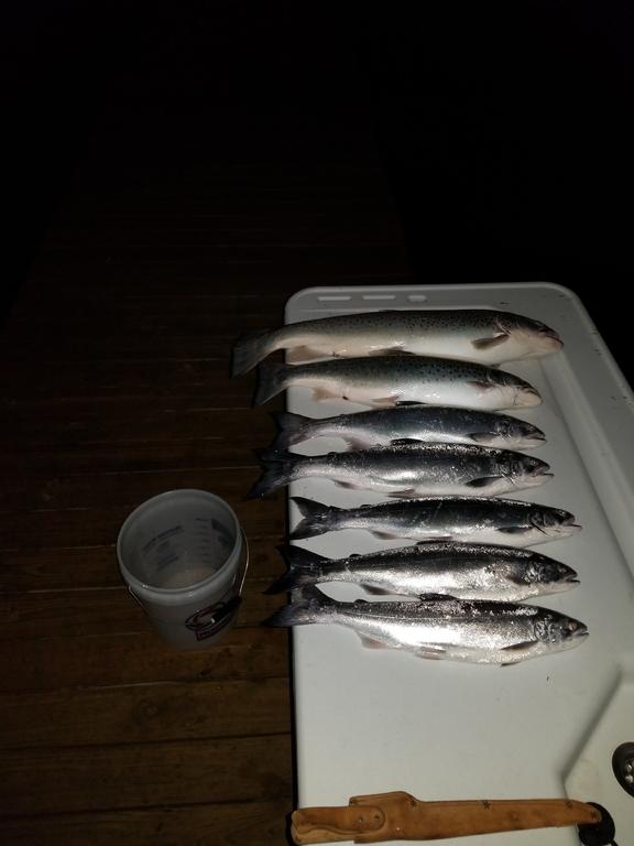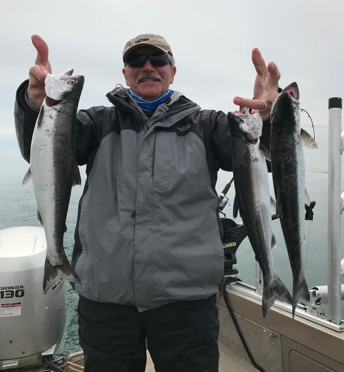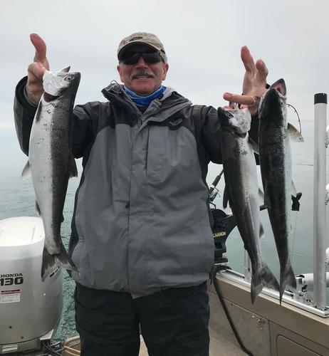 jvern Posted April 22, 2018 Posted April 22, 2018 Whent back out Friday afternoon after not having any success Friday morning. We ran South to Saugatuck before setting up way deep and trolling for 3 hours without a bump. We picked up and ran in to the beach and trolled the last hour in 20' to 25' of water and picked up 7 fish, 5 coho's and two Brown trout. The Coho came on both dodger/fly combos and body baits, Mostly on the riggers about 10' down! 4/21 This morning we planned to get out early but had some boat issues that held us back. We finally were setting up at 10:00 a.m. in the place where we finish last night. We went 9 for 11, all coho's. This morning the earlier fish were on body baits but then the flasher/fly bite picked up. We never fished in water deeper than 30'. Most of our fish came in 20' to 25' of water. Over all was a great Spring coho trip time to pack up and head back to Minnesota! Good luck! 2