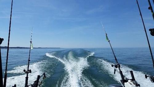 littleboat Posted April 26, 2018 Posted April 26, 2018 I was going to head down to St. Joe today. But the weather looked too good close to home. Headed south of Saugatuck. Went 5 for 5 all coho, one man limit. Fished on south troll 3.2 sog, in 12-28 fow. Lines down at 9am and up by 10:35. Fish came on yagerbomb uv mini and ladybug std on 2C and 3C. Lake was flat to 1ft surface temp 44 as was the bottom. 8 1