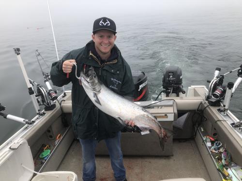 reel business Posted May 20, 2018 Posted May 20, 2018 Fished Saturday morning straight out of Holland in the fog and rain with two friends...had a couple of close calls crossing lines with a few boats that suddenly appeared out of the fog...Yikes...Thanks to other boats for staying calm working together and avoiding tangles...Wanted to run south where the fishing sounded hotter, but decided not to in the fog. Went 12-13, but only kept six...3 Kings and 3 cohos... threw back six shakers and lost a big King on a wire diver dipsy that bent the treble hook. Don’t know weights of fish because batteries on scale died...What worked: Mag Moonshine Flounder Pounder on DR 30 ft...2 Kings and a 2 coho Mag Blue Dolphin 200 cu...1 King 2 coho 8 in Green/Yellow protroll flasher/spin/glow flie on wire diver 120ft back...lost big fish Stinger Standard Monkey Puke on DR 20 ft down...and 7 color lead core...5 coho Here’s the biggest king landed...my buddies first king ever... Sent from my iPhone using Great Lakes Fisherman Mobile App 5 1