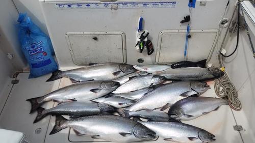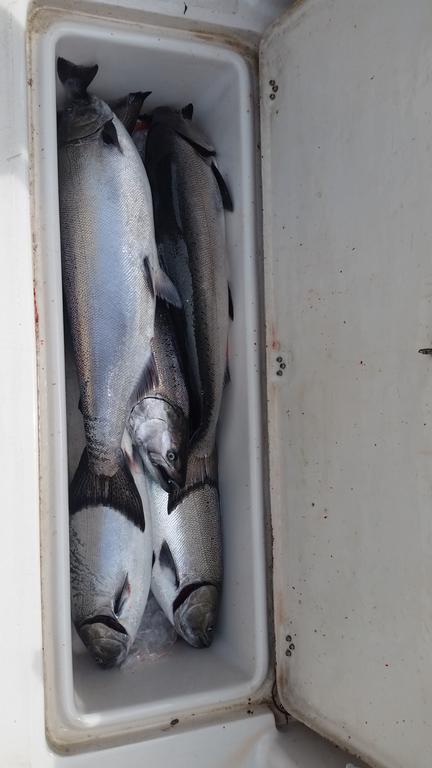 Mega Byte Posted May 23, 2018 Posted May 23, 2018 3 man limit on big kings, plus 5 coho. Could of had more if we had more people in the boat. 160-180 fow, 40 to 70 ft down. Green paddle went 4 times down 70 on a rigger. Green moonshine flounder pounder went 4 times on a braid mag diver, 1 setting, back 91. Got two on meat. All baits pictured took fish. SWR down 40 did well. Thanks for all the help with my first GH trip. 5 2