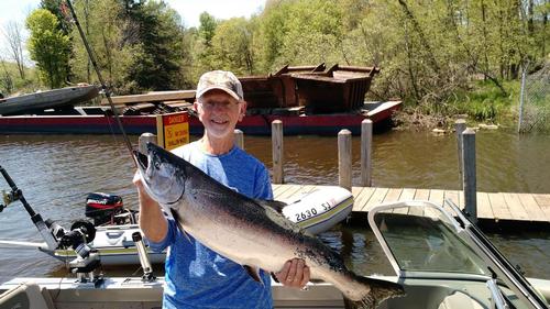 Lef T Posted May 25, 2018 Posted May 25, 2018 (edited) First time out this year, solo trip. Just put down my 2 riggers about 11:30. Noon got the first king. 26.6# fish. 12:30 got the second about 12#. Lost one other smaller fish. NBK down 67 feet took the big king. Mag flounder pounder took the smaller king. 140 to 150 feet of water, 60 and 67' down. The gentleman in the booth at the launch was kind enough to take my picture. Launch was kind of deserted! Edited May 25, 2018 by Lef T Added a picture 3