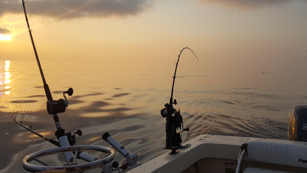 FBD Posted June 13, 2018 Posted June 13, 2018 Wood TV says 54 on shore. I know of some steel taken on the piers. Set up at the piers and it was 65. Went 3/4 on sheep with a couple big ones that were fun. Marked lots of what looked like perch, some here and there and a huge school in 37' off the bath house. Well 65 works for browns, so down the beach we go. Got passed by a sweet old mahogany cruiser that had one of the nicest sounding v-8's I've heard in a while. Then about got ran over by a bunch of women that had 93 miles of lake to go around us but had to go in between us and the beach, and we were in 6' of water at the time. Found an ~8# dead walleye floating out there. Sad. It looked too far gone for tartar sauce to fix, not that you should put sauce on a walleye. At the dune climb at about 7:45 I recalled JDH's post about 95-100' so we ran out and set up in 95' even though we only had riggers and 1-2 colors. Put the cores up high and the riggers at 40 and 70, then noticed lots of hooks on the bottom. Dropped a green dolphin mag SS to the mud and it fired before I could sit down with a nicely colored 8# laker. Thought we had something, but as we trolled north and in the marks on the bottom dried up. Some marks and a huge bait ball in the top 40', but no takers on my high stuff. Packed up at 9 and my crew has to check into work at 5am. 5