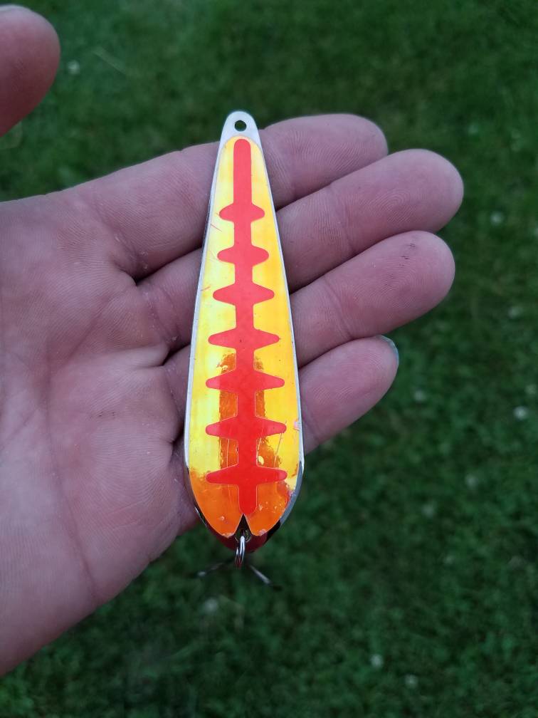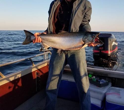 Marked a lot of fish but ended up 1 for 2. 33" King and the other was a decent sized Steelhead. Both hit a slide diver on braid 120' out on a 3 setting. Orange and silver spoon. I'm not sure what its called. 20180615_202801.jpg20180615_202806.jpg20180615_202651.jpg