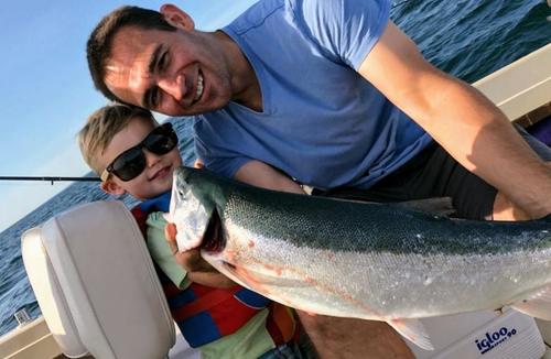 SharkFin Posted June 27, 2018 Posted June 27, 2018 Thought I'd break the JUNE radio silence...... Did a hot lap out to 130FOW and back with my youngest boy Monday evening. We hit a nice steelhead on a west troll (Mixed Veggy, 45' down, 120FOW), made the turn East and hit a laker (chrome flasher/ Oceana UV Laser fly, wire slide diver #2 setting, 200' back,105FOW). First trip of the year without a salmon. Those kings can make their way over from Wisconsin any time now. 4