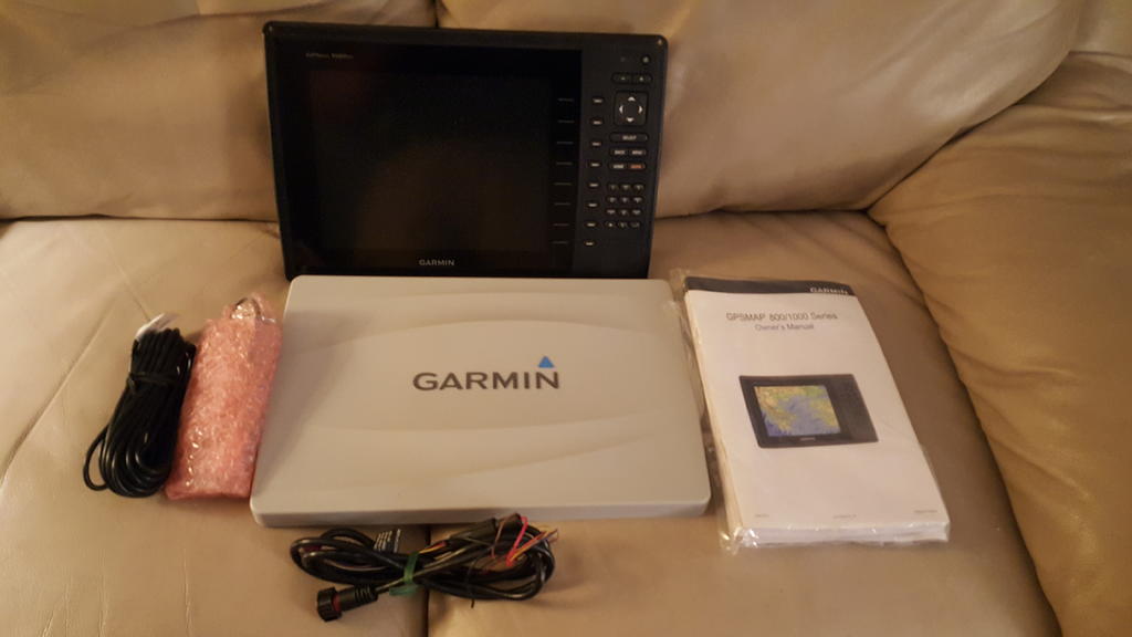 I have for sale a Garmin GPSMap 1020XS chartplotter/sonar w/transducer.  The transducer is a chirp traditional and chirp downvu transom mount . Unit has never been used because of it not being compatible with the thru-hull transducer in my boat. Unable to use the transducer that comes with the unit, because of having twin inboard engines. Only connected wiring long enough to test for operation and removed. Unit was purchased in November 2017 and I just got around installing it before my boat goes into the water. I paid more than $1600 (new) for it. It still has one year warranty left on it. Asking $975.00 for the complete setup. (Garmin 1020xs unit, screen cover, mounting bracket, flush mount kit, power cables, and all manuals. I am also including a Garmin Bluechart G2 Vision map card for Lake Erie. I also failed to mention that this unit is a Chirp enabled sonar on both the traditional and downscan modes.