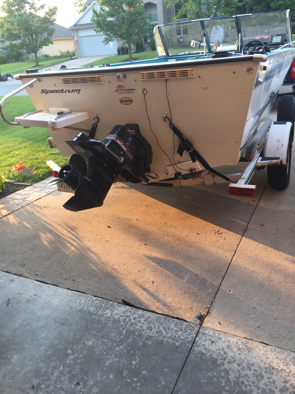 Rfredbloom Posted July 23, 2018 Posted July 23, 2018 We are selling our 1995 Spectrum Deep V Fish-n-tube boat. Some of the details are below. This boat has handled lake Wawasee and James in Indiana. And Michigan, Erie, and Ontario on numerous occasions. Nice Family boat for multipurposes. Boat is 19’3”. Deep V. With a 4.3 Mercruiser LX. (Hours unknown). Lowrance LMS350A depth finder/GPS President marine radio & Shakespeare 8’ antennae Motor guide 41lb thrust electric bow mount. (Original). Good for inland not so well on big lakes Well used trolling bag. Atwood rod holders. Used for salmon and walleye. Extensions used only for walleye. Trolling bag well used but works. Travel cover, bow cover, fisherman’s top, side curtains, rear camper cover. Original trailer. Bass Pro replace the axle five years ago. No live well converted to storage when pump broke. Asking $4000. Located in Ft Wayne, IN. Additional pics at request