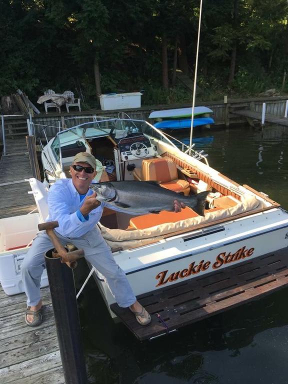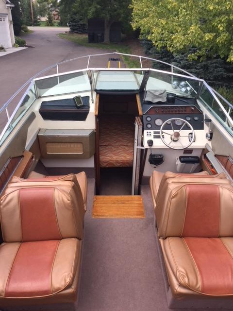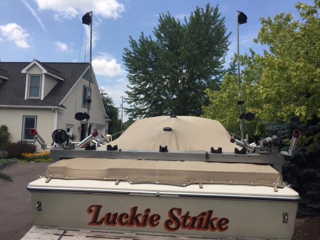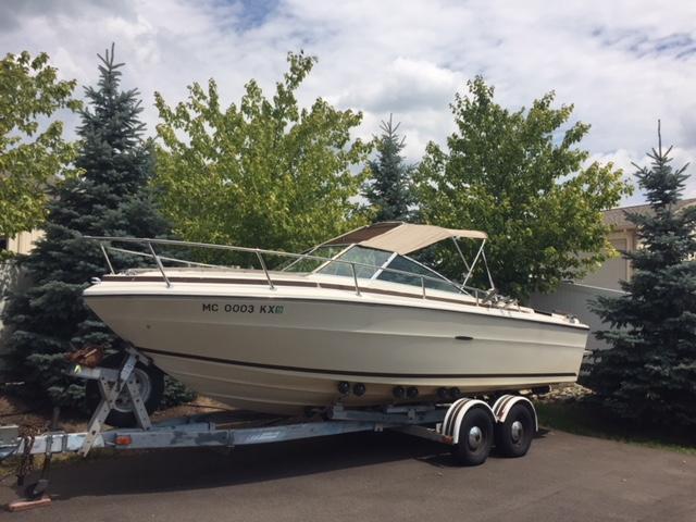 Luckie Strike Posted August 2, 2018 Posted August 2, 2018 1978 SeaRay SRV220 "Luckie Strike" Perfect boat for fishing fun, day cruising, or overnight weekends on Lake Michigan. Also great for family fun on the inland lakes with tubing, skis, wakeboard and kneeboard... and for with the fold down seats, rear sundeck and cuddy it can sleep 6 people with the Camper Canvas up! Mercruiser 898 / GM 305 I/O. Fully Maintained and in excellent running condition. Electronic Ignition. Trim Tabs. New gimbal bearing, shift cable and related bellows. Replaced lower unit, prop and upper steering pin swivel. New custom bimini and camper canvas in 2017. Re-upholstered cuddy, seating, and flooring in 2014. New 70 gallon plastic fuel tank in 2014. Tandem axle EZ Roller trailer w/surge brakes, bearing buddies, and new tires in 2017. Boat has always been stored in-doors in the off season. Electronics package: Garmin Chartplotter, Humminbird Fishfinder; VHF Radio; Stereo/CD Player; Fishing equipment: Quick Release Custom downrigger platform with Two Big Jon electric downriggers with weights, 10 rod holders. Misc: life jackets, throwable cushion, flare gun w/good flares, bumpers, dock rope $6000 or B/O. Although older, this is an excellent entry level boat that provides total flexibility and capability for MI waters with no worries!! We have trailered it all over West Michigan and taken this boat through the Chain of Lakes, Inland Waterway, to Mackinac Island, South Manitou, Grand Traverse Bay, and all W MI ports of call... as well as Green Lake for watersports!! We love this boat but are moving up... Don't hesitate to call Mark @ (616)304-9120!!