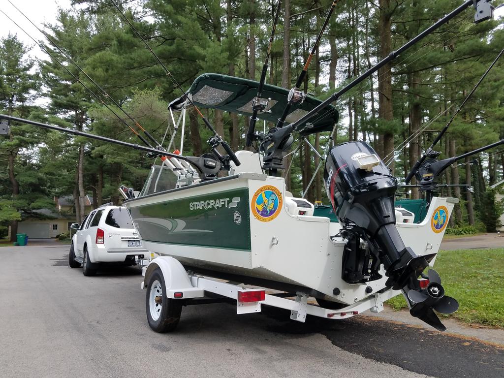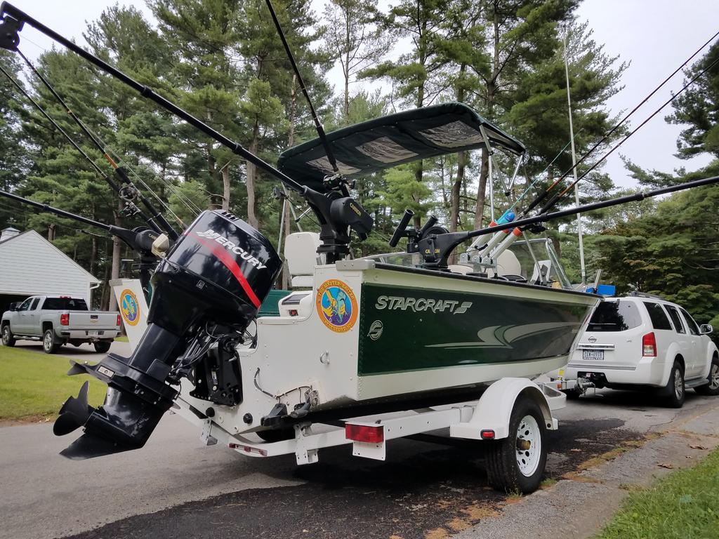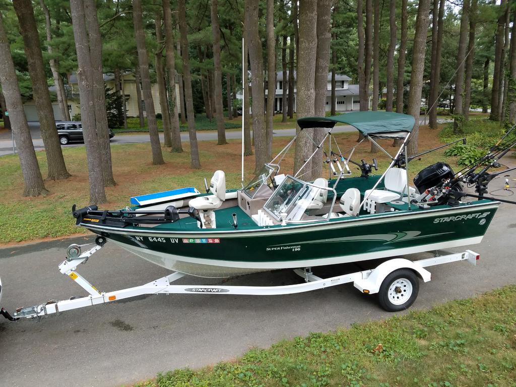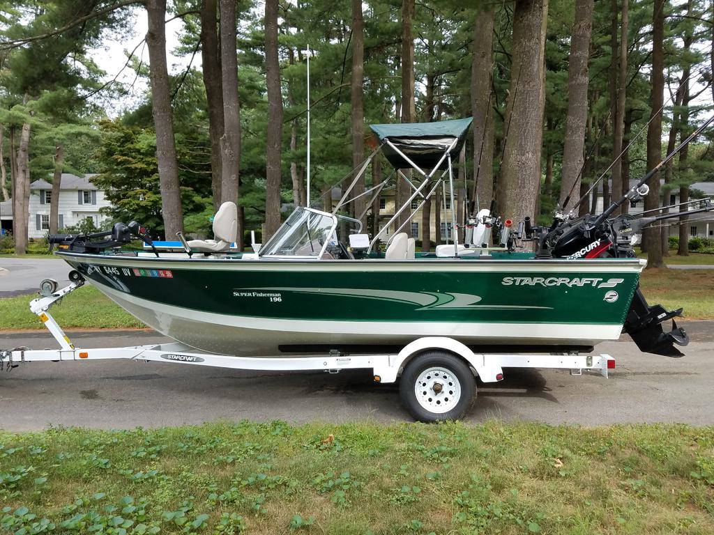 John S Posted September 9, 2018 Posted September 9, 2018 (edited) 2001 Starcraft Superfisherman 196 Based in Rochester, NY this beamy very well maintained 19' 6" one-owner boat does it all. It is totally outfitted and ready to take on any freshwater species in any weather. Deep V to take on the lake for salmon. Bass casting platform up front and in back for Fingerlakes and Canadian bass/pike/walleye fishing. With over $10,000 worth of fishing extras, this boat comes fully loaded with everything you need to start fishing. Although this boat is made for fishing, it is also a comfortable family boat (floors and sides are factory carpeted) and comfortably seats five adults. Works well for water skiing and pleasure cruising. Even the wife and kids will be excited to own this boat. 125HP Mercury oil injected two stroke (four cylinders that drop down to two cylinders for trolling). Trolls down to a steady 1.2MPH for Salmon fishing. (trolling bags included for lake trout fishing). 74lb thrust Minn Kota electric trolling motor with extended shaft and detachable bow mount. Three bank battery setup (dual 12V for trolling motor + starting/main battery) with on-board charger. Factory custom trailer made for boat with new tires, new spare, oil bath lubricated bearings. Factory four piece canvas top (top, back, 2 sides) doubles as a custom bimini top to keep the sun off your head. Two large lighted livewells. Furuno saltwater sonar in cockpit, Eagle depth finder in front with sonar mounted to Minn Kota electric motor for bass casting. Lowrance X-15MT GPS with nautical maps/chips. 2 Cannon Electric downriggers, 2 Cannon manual downriggers - all with rod holders. All have quick-remove mounts. Including 6 cannonballs and custom storage holder. 2 heavy duty Big John 3-rod adjustable rod holders, numerous other rod holders throughout boat to hold all your trolling and casting rods. Tons of storage lockers throughout the boat Excellent sound system with AM/FM/CD/AUX IN radio/head unit, 400 watt Clarion Marine amplifier, Bazooka subwoofer, MB Quart Marine 5-1/4" front speakers, Pyle dash tweeters, Bowers & Wilkins marine box speakers for rear. Raytheon Marine autopilot (presently not installed and may need repair). Shakespeare Marine Radio with 7' antenna with collapsible mast. Big John outrigger mast/reels with a pair of custom planer boards, pair of cannon planer boards and all the rigging. 8 Salmon rods including: 5 Ugly stick trolling rods with Daiwa line counter reels 1 Ugly stick lead core trolling rod with Penn 330 reel 2 Daiwa Heartland wire rods with Daiwa line counter reels Tons of spoons, plugs, J-Plugs, flashers, flies, divers, cow bells, peanuts, etc. Custom detachable cleaning board - mounts to bow gunnels to clean fish out on the water. Heavy Duty Ice/Drink/Fillet cooler perfectly fits up front between driver and passenger. Custom interior night lighting and rear mounted spotlight to easily see those lunker walleyes without having to hold a flashlight, as you bring them to the boat and remove those hooks at night. Remote controlled removable front spotlight. Oversized green dock bumpers, green premium mooring lines, trolling bags, drift bags, large slip-ring anchor with 75' of line, water skis, tow rope and all the necessary items required by the coast guard including six life jackets. Custom boat cover made for boat in 2001. Cover still functional and water resistant but will need replacement in several years. I purchased this boat new and have had a ball customizing it and fishing it over the years. It's been wintered most years in a storage barn. Regretfully, I'm selling it because I just don't have the time to fish anymore like I used to. $15,800 firm. Contact John at email: [email protected] Edited September 23, 2018 by John S Accepted an offer on the boat