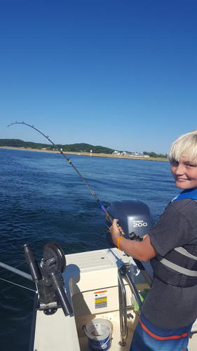 ZachEno Posted September 12, 2018 Posted September 12, 2018 1 for 3 trolling Holland Harbor with the kids today. Once we learned that the kings weren't out front but instead deep into the channel and even into Lake Mac we did better and managed our big fish of the year and my son's largest ever (he reeled it in). 38.5 inch male weighing 23.5 pounds came on size 4 chrome red head jplug in 26 fow down 15 on rigger inside Lake Mac directly out from Parkside Marine at around 3.00pm. 20180911_150334_001.mp4 20180911_150334_001.mp4 Great work!Sent from my iPhone using Great Lakes Fisherman
