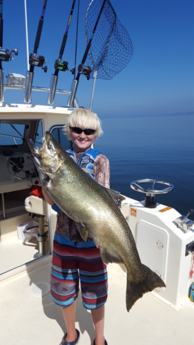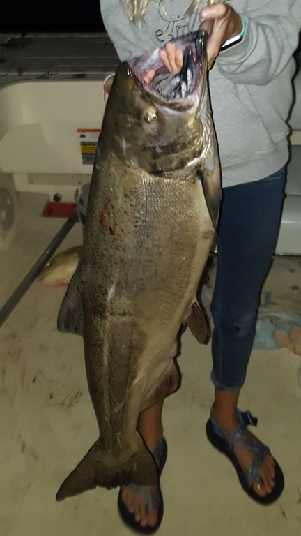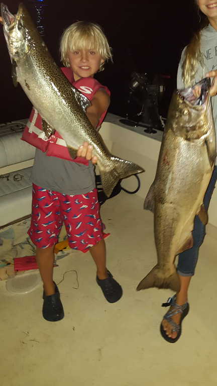 2MD Posted September 12, 2018 Author Posted September 12, 2018 have the whole fam now with me now and we did the dunes and just got done making a couple passes on the saugatuck piers at 4.30pm - on pass number 3 right out front in 12fow a huge male just smoked the rigger- fought him for 20min we did only to have the heart break of having the jplug pull out! this one jumped completely out of the water 6 times and will long be remembered 1