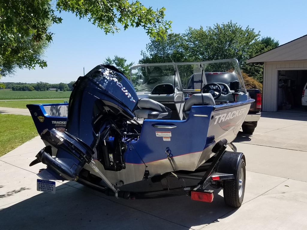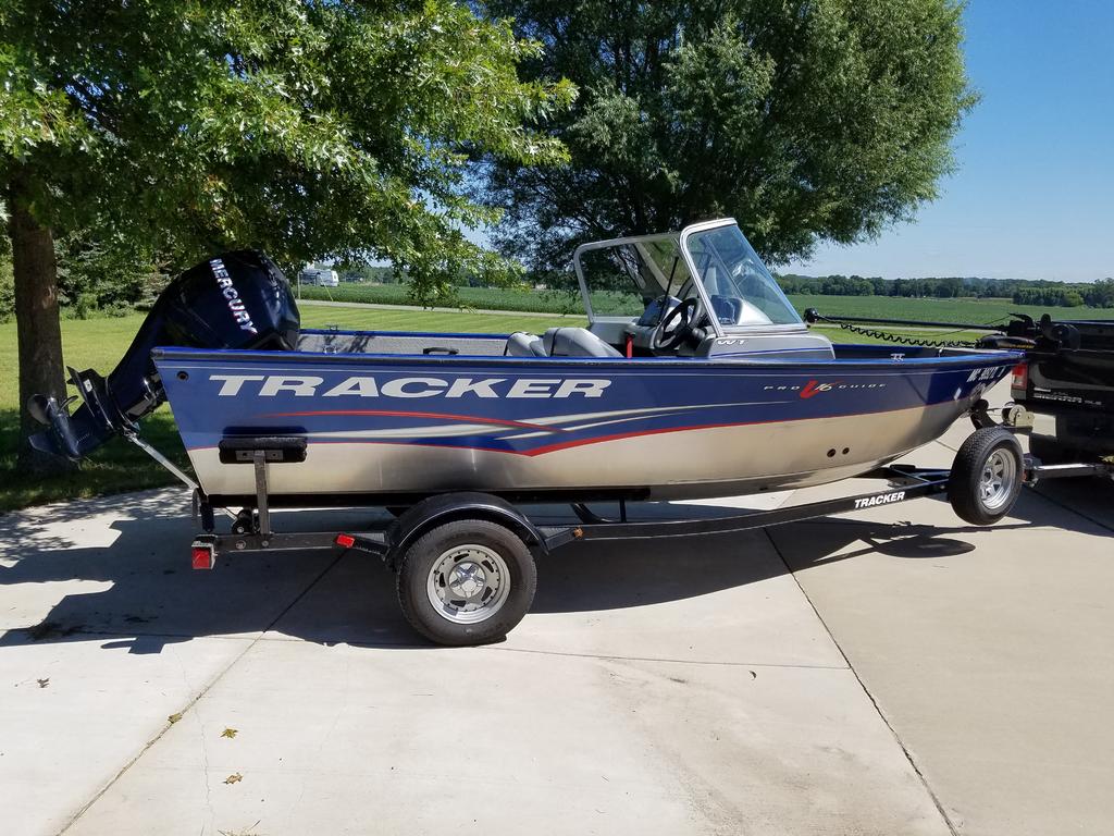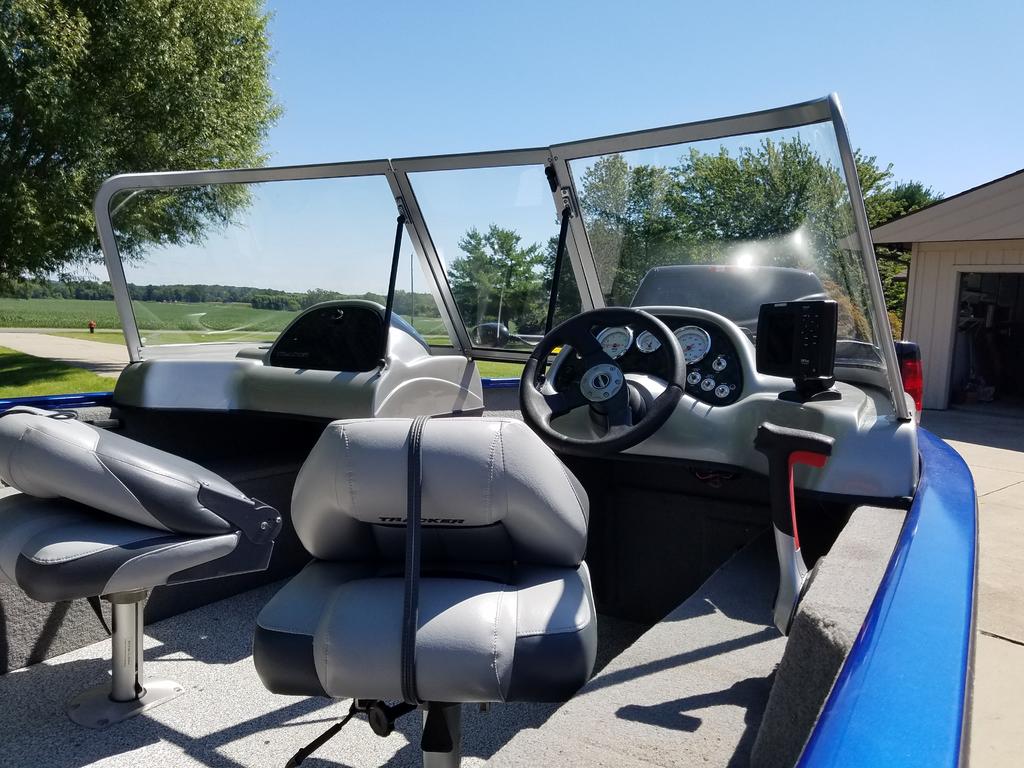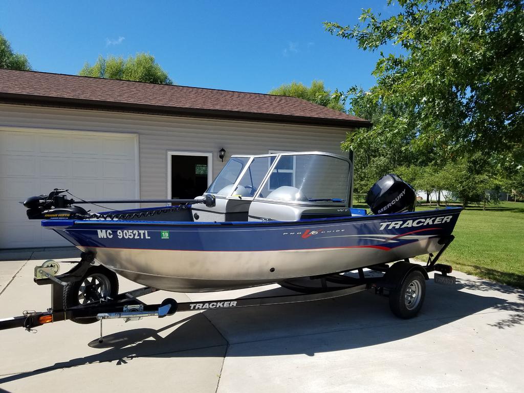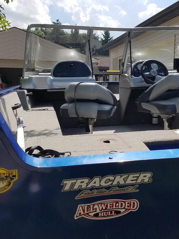 tracker Posted September 19, 2018 Posted September 19, 2018 (edited) Sleek port & starboard consoles w/walk-thru windshield • Wide, stable, all-welded 20-degree deadrise Deep V hull for a great-handling, smooth, dry ride. • Exclusive VERSATRACK accessory-mounting channel in gunnels • Mercury 60 HP fourstroke engine. • Minn Kota PowerDrive 12V, 55-lb. thrust foot-control trolling motor • Lowrance® X-50 fishfinder w/surface temperature & swivel • Humminbird 587 HDI color fishfinder. • Bow 23-gal. (87.06 L), 40" (1.02 m) aerated, recirculated livewell w/removable bait bucket, timer & pump-out system. • Two 8' (2.44 m) lockable top-loading side rod/gear boxes, 3 bow compartments & 1 aft dry storage box • 4 movable 360-degree swivel fishing seats w/6 seat base locations • Easy-clean vinyl cockpit floor & carpeted fishing decks & cockpit sides • Factory-matched trailer w/EZ lube hubs, swing-away tongue retractable safety cables & all-welded frame w/GALVASHIELD® protection Excellent condition very low hours. $12500 cash only, no trades PM only for further info. Edited May 3, 2019 by tracker Sold
