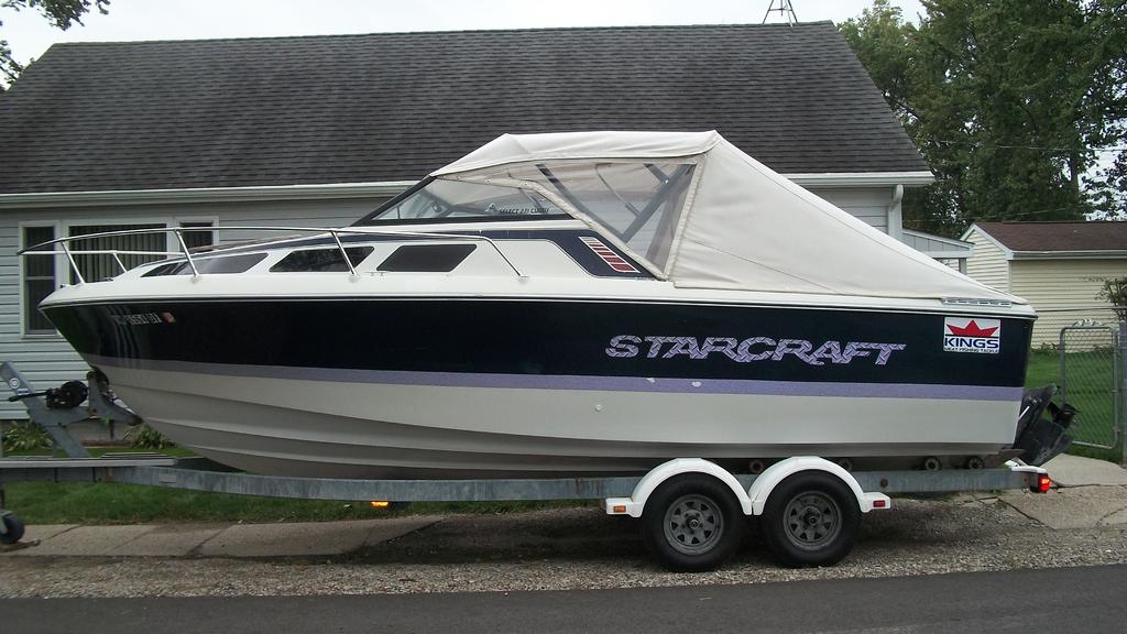 dschbr1 Posted September 23, 2018 Posted September 23, 2018 1988 Starcraft Select 221 Cuddy. V8, 5L, I/O. New plywood/vinyl floor,2015. Life jackets. Anchor w/ rope. Spare prop. Two extra seats that can be set up behind pedestal seats. Full canvass cover. Double axle galv. trailer. New hitch/brake actuator, brake pads, bearings 2016. New taillights 2015. Spare tire. Tires in good condition. Used this on lake mich. for salmon fishing. We decided it's time to retire from the big lake. Also have fishing equip. for sale separately from boat, downriggers, rods, lures, misc. equip. for salmon/trout. Still doing inventory, will list soon. $3800 for boat/trailer or reasonable offer. Cash is king. email [email protected]