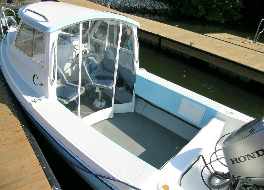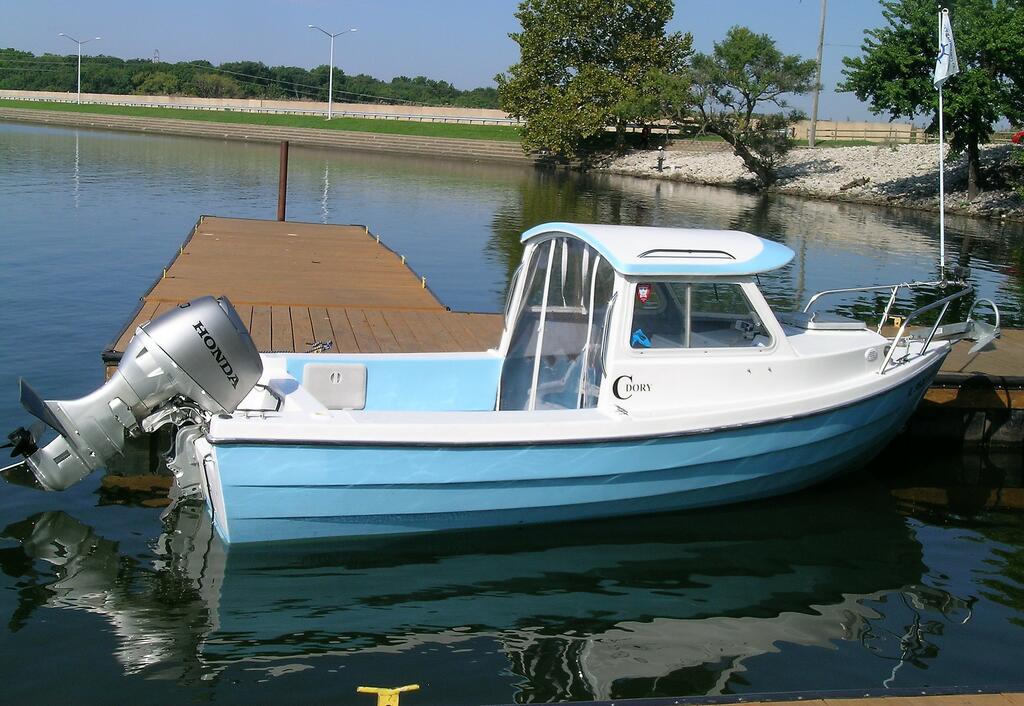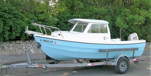 The Greek Posted December 31, 2018 Posted December 31, 2018 This is a great 1985 era C Dory 16 Angler model ready for someone who needs a great fishing and/or family boat. These fabulous boats are built in Seattle, WA to withstand the heavy swells of the Pacific and are right at home in large or small bodies of water. She is a great fishing platform and has helped me to harvest huge numbers of salmonids around the great lakes. She is in Springfield, Illinois, and includes the following features: 1. Two comfy removable pedestal seats on sturdy mushroom bases. 2. Baystar hydraulic steering system. 3. Master battery switch. 4. Two batteries: one for starting (conventional); one house battery (blue top AGM – 55Ah) for running autopilots, sonar, and other necessary toys. Batteries are linked to a Blue Sea automatic charging relay which charges the battery that needs it the most. 5. Two onboard battery chargers. 6. Motor trim gauge. 7. Tachometer 8. FELL electronic remote kill switch that eliminates the use of a physical tether (see photos). a. FOB device which can be worn like a wrist watch or hung on a lanyard. b. Device will shut the motor off electronically if you fall overboard; or c. Walk away from the boat; and/or d. Locks the boat key out if you walk away to get your tow vehicle. e. Boat can’t be started without the FOB being activated by you. More information at: https://buy.fellmarine.com/mob-basepack.html 9. Uniden ship to shore radio with distress button, and high mounted antennae. 10. Lowrance Elite-5 sonar unit with CHIRP and benthic (underwater) charts. 11.. LED spot light on bow for night time navigation around ports. 13.. Electric windshield wipers (2). 14. Master electrical panel at the helm, secondary bus bar panel under motor well (at the stern) for additional toys. 15. Bilge pump (800 GPH). 16. Three 12V auxiliary plug connections: 2 at helm and 1 at stern to keep your devices charged. 17. Stainless steel steering wheel. 18. Cockpit curtain (AKA Alaskan Curtain) made of clear heavy-duty marine vinyl and two-sided zippers. Curtain provides great protection from the elements and rolls up in the center to allow easy access to cockpit. 19. Water/fuel separator. 20. Six-gallon portable fuel tank (the boat is not rated for built in tanks) 21. Honda BF50; 4 stroke outboard (2008) with 600 hrs. a. Quiet and fuel efficient. Average day of trolling for six hours: 4-5 gallons. b. Delivers 17 amps/hr of charging to the batteries. c. 3 blade 10”X14 pitch prop (extra prop included). d. Anodes (2) have been kept clean; no external corrosion. e. Hydrofoil. f. Meticulously maintained and serviced since owned by me in 2013. 22. Newly painted inside and out with Top Secret Coatings enamel. This paint has greatly improved both the speed of the boat and increased the fuel savings. This is the paint used by the US Navy on their fleet, and feels like glass, even without waxing. More info at: https://www.topsecretcoatings.com/ 23. Large (16”X16”) storage area in from of first mate’s seat. Hatch has slots that allow for 5 standard #3700 size lure storage trays. 24. Sealed flotation compartments: 1 on each side of stern work area provides approximately 8 CF of closed cell foam. 25. Covered (LED illuminated) storage under stern motor well. Vinyl cover keeps the area tidy. 26. Large (LED illuminated) storage area under the helm for equipment, and access to boat electrical connections. 27. Sliding windows on starboard and port. 28. Pacific Trailer: all steel galvanized with guide-ons, bunkers, and a spare tire with cover. 29. USCG approved marine fire extinguisher. 30. Safety checked and passed by USCG Auxiliary (2016). 31. Both boat and trailer currently titled and licensed in Illinois and taxes paid. Boat has been garage stored since 2013 when I acquired her. Motor has been exercised and is not winterized, so a sea trial is possible when you are ready to check her out. Price: $15,000 OBO.