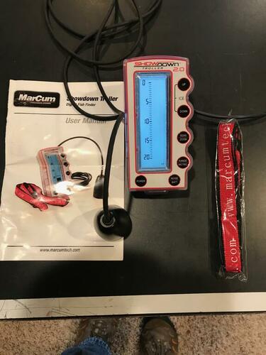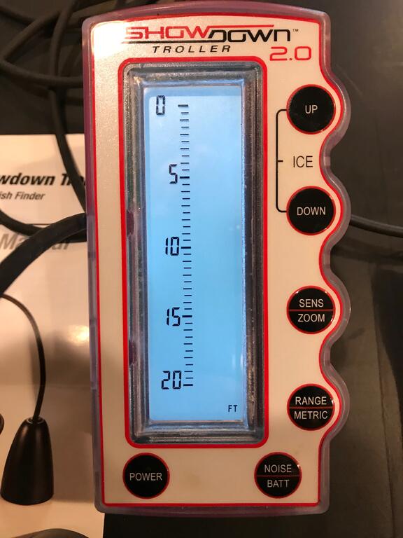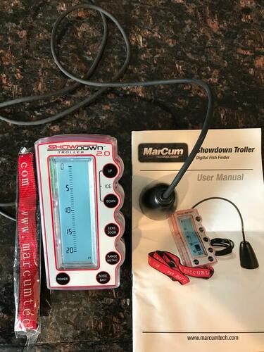 jshard Posted February 10, 2019 Posted February 10, 2019 Ice Fishing Depth Finder MARCUM Showdown Troller Digital Finder 2.0 Like new Marcum showdown troller 2.0 bought for ice fishing. Only used twice, discounted to $125 It is operated via batteries, includes transducer and new lanyard for handheld great shape. Compact unit for use of either ice-fishing or shoot through your canoe or kayak order to find fish and the correct depth. The ShowDown Troller 2.0 features high-level fish and structure finding technology, all packed into a handheld device that fits your parka pocket. A totally digital operating system is loaded with copious software upgrades: Patented 10-level Interference Rejection (IR) System, 25-level Sensitivity and all new Auto Bottom-Lock Zoom make for one powerful sonar device that’s light on its feet. With advanced practical features such as progressive Ice Mode, 5-inch Sunlight Viewable LCD and a specialized neck/wrist lanyard, you’ll become an ice-trolling machine. Enter the era of sonar-stealth. Standard Features: 25-level noise sensitivity 10-level noise/interference rejection Ice mode Depth measurement in Standard or Metric 5 or 10 foot bottom lock zoom Battery status display 12 Volt Rechargeable Battery Option- pig-tail lead that can be attachable to an accessory 5-inch Vertical LCD Display Automatic bottom lock zoom in selectable 5’ & 10’ windows 20-degree Transducer with 6’ cable Up to 4,000-watts Peak-to-Peak Power 2-inch Target Separation 120-foot Range with Auto Depth Scale function 25 Sensitivity settings 10 IR (noise) settings 12-volt or 6 AA Power capabilities w/battery status indicator Runs 20 hours continuous on 6 AA (not included) Daylight Viewable Backlit Display Ice-Mode activates Internal Heater to aid LCD in extreme conditions Made in the USA with US and imported parts Included: Showdown Troller Handheld sonar Unit 6-feet transducer/power cable and 200 kHz- 20 Degree transducer Neck Lanyard User‘s Manual Also, have a Coleman Northstar Propane Lantern New ($25) New never used, still in the original box Carry a bright light when you pack a Coleman Northstar Propane InstaStart Lantern. This outdoor companion runs on 16.4 ounces of propane fuel. Find just the right light with an adjustable knob that allows you to dim the brightness level as low as you need it. This lantern is perfect for camping, hunting, tailgating and in cases of emergency. Insta-Clip Tube Mantle Folding base Intrastart Ignition Porcelain Ventilator Adjustable brightness High-Temp Globe Lasting Illumination Globe Protection Propane operated