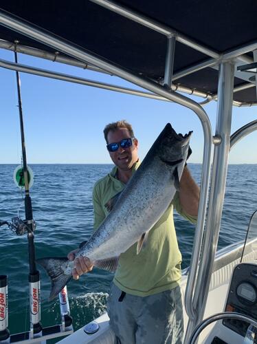 Seahunt210 Posted August 9, 2019 Posted August 9, 2019 Finally a fish. 200 fow straight out from Muskegon. Low diver out 125ft green and mirror spin doctor and a greenish fly. Took another hit on high diver out 175ft, but he didn’t hook up. There were 2-4 foot large rollers so it wasn’t the most pleasant, but at least one. 24lb. Going again tomorrow. Sent from my iPhone using Great Lakes Fisherman Mobile App 7