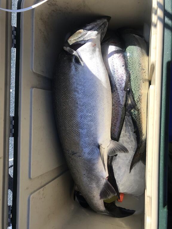 jdh Posted September 2, 2019 Author Posted September 2, 2019 Lost the plug in a tangle with the big fish. They don't sell very many colors anymore! Went out again this mornings, but the bait I had found had moved. Still managed 2 smaller kings 6-8 lbs or so. Waves felt a lot bigger than the buoys 1-1.3 ft reported wave height. Said it was about the same as on Saturday, but no way that was correct.