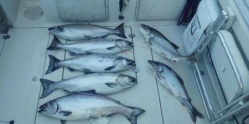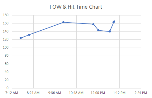We started setting lines in 70 FOW and worked as deep as 185 FOW.  I thought this chart did a good show of showing where the hits were and how spaced out they were.  After the two hour-ish lulls we had, we move to more out front of the port and the action improved.  Most of the morning we were a few miles North of the port.