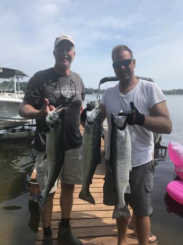 Seahunt210 Posted July 25, 2020 Posted July 25, 2020 Friday went 1 for 2. Fished 80-120 fow. 10lb king early on low diver set on 1 out 140 on braid. Mountain Dew flasher with green/white fly. Lost a 20+ king(my guess) on a low diver on same rig back 170. Saturday 3 for 5. Fished 120 to 180 fow. Rigger down 63 smaller fish on moonshine gator. Surfaced, but caught in dopey and lost him. 12lb king on 13 color with blue dolphin. Next three hits on same rig. Low diver back 155ft with Mountain Dew flasher and dark green fly. Missed the first one, but next two were 8lb Steelies. Sent from my iPhone using Great Lakes Fisherman Mobile App 2