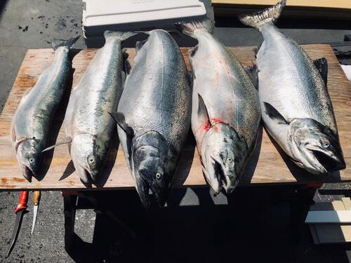 zgrinder on Fin Warrior Posted August 8, 2020 Posted August 8, 2020 Pushed off at 4:00pm and set down in 125FOW trolling west. Marked fish in 135FOW but decided to keep pushing out since it was early. Hit 190FOW and started a north-south troll. Took a nice 10+lb steelhead on a mag green 2-color SW rig down 75' with a mag green dolphin on the business end. Next came a double, SW hit first then a spinny w/ blue fly 81' down went off immediately after. Did my best to fight both and clear the 3rd line, 300' copper which of course was right in the thick of things. Once the copper was up I kept fighting both and then just had to pick one because both drags were still spooling. The SW green dolphin sported a 21lb king, the blue fly, who knows, hook bent and fish was gone. I decide not to mess with the copper and put a 2 set diver out back 190' with a mag blue-silver-yellow holographic spoon and was rewarded about 30 minutes later with a 20lb king. Unfortunately, while pulling the hook out I did not take notice that the dipsy broke off the line and dipsy and spoon became a donation to the fish gods. No worries, I had more of that set up! While making the repair, I put out another dipsy, same distance with a green alewife spoon. Clearing that line 20 minutes later I had a 5lb steelhead on it - didn't see it get tripped while I was finding a new spoon and fixing leaders. Things got quiet for about 30 minutes and I move into about 185FOW due to boat traffic then the blue fly spinny erupted once more and that produced a 19lb king (must of had one less meal than the others). That made a hand so I pulled lines at 8:20pm and went home to watch the Hawks beat the Oilers and advance to the next round. Yes I do like my hockey :). Sorry no pics as I was by myself. 4