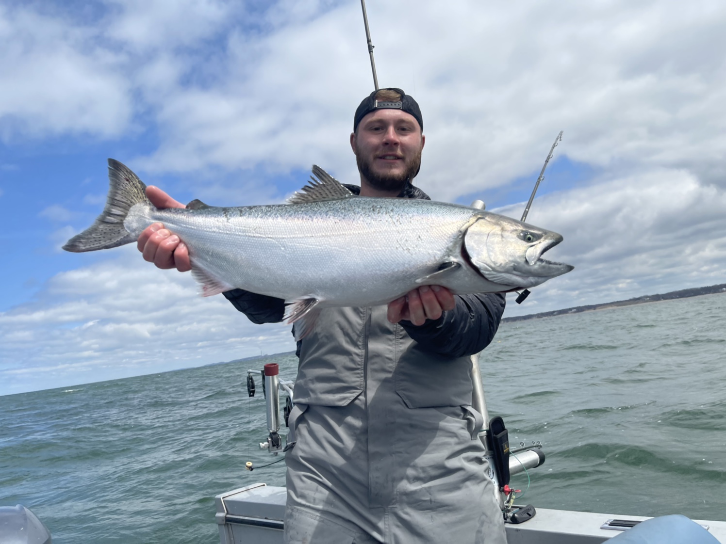 Tyeeplease Posted May 5, 2022 Author Posted May 5, 2022 Late start 8am 2-3 ft waves, windy,water temp44degrees could only troll south variations due to waves -2 Kings 12&15 lbs 1st King9:30am. Downrigger 32 down in 60 fow, standard size Blue Jeans spoon 2.7 speed at the ball, 2 nd King 15 lber on 200 cu in 70 fow chrome blue blk spin doctor Aqua blue fly we would troll south a couple hrs , pickup gear run back up north set up and troll south again Konablue1 18 ft Lund Tyee kept us relatively dry as we went back north into waves good shakedown trip-Say IT -KING ME!! Sent from my iPhone using Great Lakes FishermanSent from my iPhone using Great Lakes Fisherman