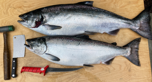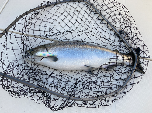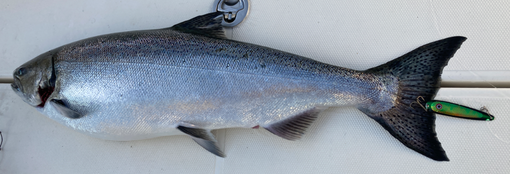 zgrinder on Fin Warrior Posted July 16, 2022 Posted July 16, 2022 Fished the morning putting lines down just outside of 100FOW before 6:00AM north of the channel and away from the boat traffic. The lake was flat, bug free and gorgeous. Glow baits did not deliver early morning which has been the typical out come for me as of late. Switched out the high dipsey to a dark spoon (Evil Alewife) and the SB rigger to a Proctologist fly. I was ready to pull SWR (7:15am) to switch out the glow Wonder Bread J-Plug when it popped and ripped line. After a really good king fight, boated a 13lb king @ 108FOW, 73' at the lure on a NW troll. Set the boat to a North troll, reset SWR and within 15 min the high diver (53' down) with Evil Alewife banged hard twice and exploded. After getting the rod out of the holder, I saw a king leaping out of the water, 2-3 times on a run, not like a Steel Head but on a run, on multiple times, off to the side of the corner of the boat. Once I gained enough line, I knew it was on the business end of the rod I was working. I could not move the fish, line continued to pull out and getting spooled was a possibility. So with neutral drops I pulled the other two lines and continued the neutral drop strategy to gain on the fish. After 40 min of battle with the fish near the transom, I could see it was coming in tail hooked. Netted the fish and got it in the boat and the hook fell out - fish Gods smiled down on me this time. Weighed in at just over 18lbs and provided a good number of steaks for the grill. I kick my self for not putting dark baits up high at the get go. I do that dusk fishing with great success but have been trying to get the glow bait program working in the morning to no avail. The winds picked up from the South after that and I could not get anything to bite for the next 2-3 hours Ended the day 2 for 2. In the end, I got what I came for The 13lb king was a natural, the 18lb king was a plant. 6