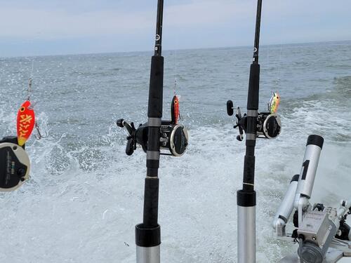 EdB Posted March 29, 2023 Posted March 29, 2023 First troll for us, fished from the beach out to 25 fow. It was a great bite! Thin fins on boards with 50-80 ft leads and orange gold jointed raps on divers, no rings, out 10 ft. Ran 10 rods, 5 guys, had our 25 fish in 2.5 hrs. Good luck! 7