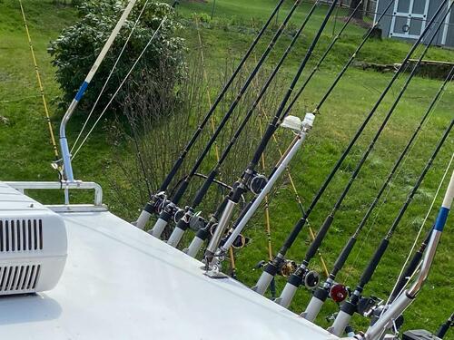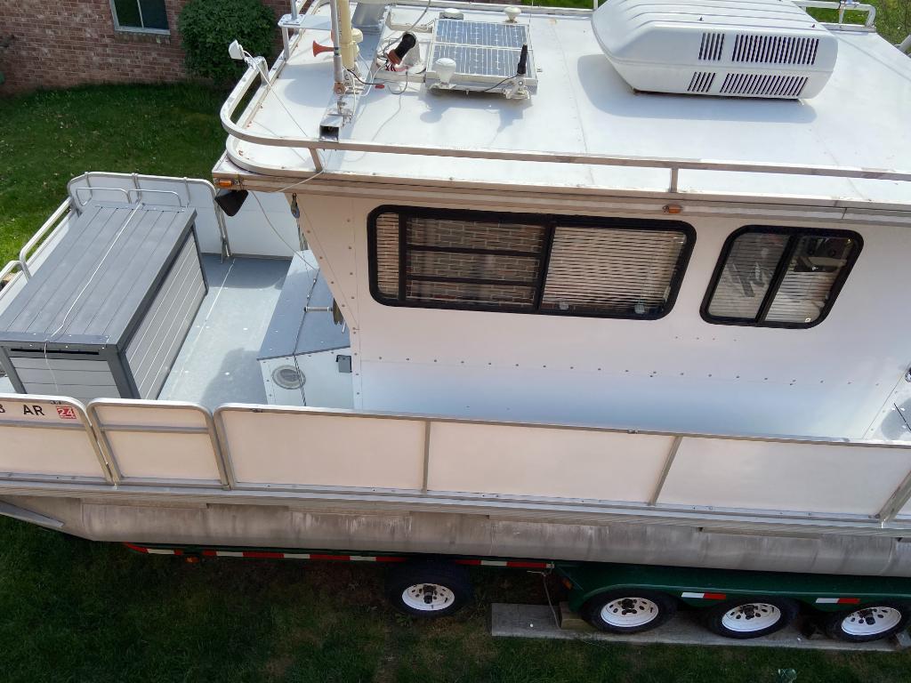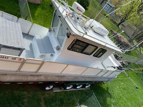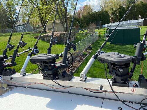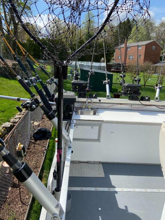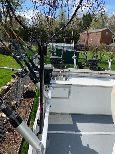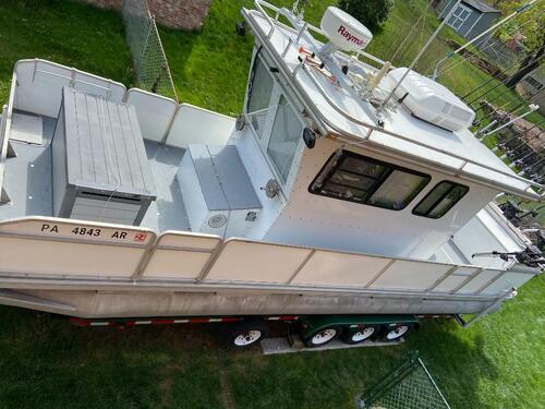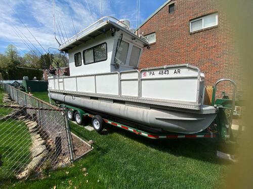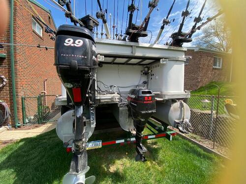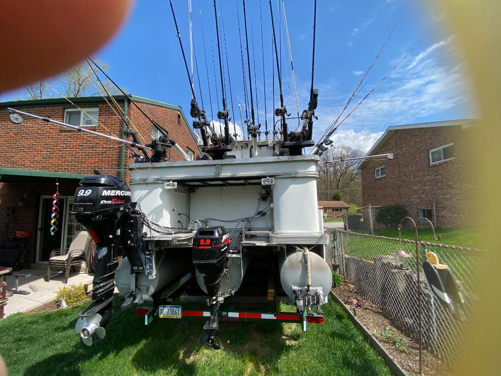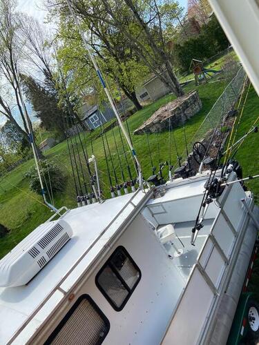 Wander Posted May 7, 2023 Posted May 7, 2023 S O L D / C L O S E D! More pictures at end of ad ???????? Can't figure out how to move them!! 28 Ft. Tracker Marine Tri-Pontoon ONE OF A KIND! Custom Built in 2009 - for Lake Ontario Fishing! All Fishing Tackle & Gear included in sale! 28Ft. Tracker Marine Tri-Pontoon, walk around Center Cabin, Air-Conditioned - Roof mounted. W/Trailer. Plus MANY Extras (Too much to list) PLEASE NOTE: (Sale is “As is – Where is” Delmont, PA 15626) ****** Selling due to Health Issues ****** Or I would be Fishing the Derbies! Reasonable Offer Considered! Reply to: [email protected] DETAILS Boat: 28 Foot Tri-Pontoon - Tracker Marine - Pontoons Hull ID: BUJ93011I788 PA Title#: 0255866 Walk-around Center cabin has a Roof Mounted Air Conditioner Deck: ¾” thick Composite floor (won’t rot), also floats All Stainless-steel hardware (won’t rust) Has 5 access gates, easy to land the big fish Four corners of Deck have Aluminum lift plates, accessible from cabin, for washing down the deck! Rear Counter: Has a wet sink & washdown pump w/hose. Has a Removable center section for Cooler-access, Gas tank (stationary) compartment, Batteries: 4 Batteries / Battery Charger Battery compartment in rear w/2 Batteries. Battery compartment in cabin w/2 Batteries. Electronics Include: Auto Pilot: (Raymarine Smart Pilot SPX-5R Sport Pilot 32626) w/wired remote control Radar: Raymarine - RD 218 2Kw 18” Radome - Model E52065 VHF Radios: Raymarine RD215, Standard Horizon Eclipse+ Fish Finders: Bottomline Tournament 360 Scanner Lowrance LCX-18C w/GPS & Navionics East Great Lakes disc Raymarine L1260 Plus w/GPS Raymarine RL70C Plus w/GPS Raytheon L760 (Rear Deck mounted) Black box: Cabelas - connected to Downriggers Compass: Saturn GPS: (Garmin GPS-128, Lowrance, Raymarine GPS-125) Radio: Pyramid AM/FM CD Player AIS Engine: NASA Marine Ltd. Troll Master Pro 2: Throttle control (Kicker motor) wired remote Accessories Include: Dock Box (150gal): Storage for anchor & ropes, life jackets, cushions, planer board reels, planer boards, hand lines, Boat fenders & misc. TV : for television & Front & Rear Camera viewing 24” View Sonic 1080p computer monitor: for Offshore Navigator Software, laptop viewing. Downriggers: 5 Scotty w/swivel bases, adjustable Booms Downrigger weights: (1) 15# Stainless Steel Fish (6) 12# Ball (7) 10# Fish (2) 8# Ball (1) 6# Ball Outriggers: 15-foot Perko telescoping outriggers (fiberglass) w – holders Planer Board Reels: INVADER, plus two custom-made Stainless-Steel reels on cabin. Planer Boards: Riviera Microwave oven: GE Turntable Microwave oven Anchors w/ Ropes (2) , Hand lines, Roof mounted Rod holders (11) Folding arm w/rod holders on both sides Roof mounted Solar Panels w/controllers (2) Propulsion: Boat is now set up for 20HP limit lakes of PA! Two Mercury Motors w/separate controls Both motors connected w/ EZ Steer steering, Plus - an extra EZ Steer connecting rod. Kicker Motor: (235 hrs.) 2009 Mercury 9.9 Pro Kicker four stroke Power Tilt (2009 F9.9EXLPB Serial OR302586) New Impeller Installed All Oils changed @ 100 hrs. or annually! & Main Motor: (Unknown hrs.) Mercury 15 hp four stroke (9.9 Decaled) (2003 15EL 4STR Serial OT690911) New Impeller Installed All Oils changed @ 100 hrs. or annually! Extra Motor-included: (637 hrs.) 2003 Mercury 25 hp four stroke Bigfoot (2003 25ELPT 4STR -Bigfoot) Model: 1F25412A D, Serial OT755543 with spare - new lower unit (was never installed) Extra props for 25hp Mercury motor All Oils changed @ 100 hrs. or annually! Honda Generators: Two Honda 2000i connected in parallel. w/ extended run gas tank (Capable of running AC, Microwave, TV and Battery charger & accessories while on water) 3000 watt Inverter - OSP Tiger Claw Safety Equipment: Life Jackets - PFD (Water activated) (4) w/spare rearming kits) Life jackets (PFD) (11) Throwable cushions (3) Hard style – throwable (1) First Aid Kit Flare Gun kit / Distress kit Emergency Air canisters (4) Fire Extinguishers (2) Landing ropes (5) Ropes - Long lines (4) (2 approx. 225 foot) mooring hooks (3) anchors w/line (2) landing lights (4) Roof mounted Fenders (large & Small) (9) Electric Air Horns (Model 40134) w/Hand operated and Canister backups Landing Nets: (3) Large landing nets (for King Salmon, Walleye etc.) Trailer: CHATEAU Tri-Axle trailer w/upfront built in ladder Serial #: CW195369 PA Title#: 211003341502YA w/(Eight) - NEW - 8 ply 14” trailer tires (ST205/75R14)(Feb-2023). Brakes on all 6 wheels. Surge Brakes were changed to: HydraStar HBA-12 Electric over Hydraulic braking system Now controlled by electric brake controller. Breakaway system by Hopkins - Model20099 Axles are movable, can be slid forward or backward A spare axle w/ 13” tires - in case of low water ramps & is a spare axle. 25 hp Four stroke Bigfoot Mercury is replaced with 15 hp Mercury for Pennsylvania lakes w/ 20 hp limits! 25 hp Mercury Bigfoot is included in sale! MORE INFO Boat specially built for Serious Trolling Lake Ontario for fishing & derbies. Now setup for 20 hp limit lakes of PA. Safety equipment: Life jackets, lrg. and sm. fenders, fire extinguishers, ropes, mooring hook, anchors (2), Paddle, landing lights, Flare gun/signaling kit, First Aid Kit, Emergency Air kits. Rod storage space racks in ceiling, and on side wall. Porta-potty w/supplies. with drop & Sliding curtains for privacy. Cabin has 3 folding swivel seats. One is removable for use in rear deck for fighting fish. Cabin is lockable w/screen door. (4) - FVP 27 Marine Batteries (4/2022). Two solar panels on roof and a Battery charger. All Kinds of Electronics: See Other List. Rear deck has counter w/wet sink for cleaning fish, Deck wash-down pump & hose. Four corners of Deck have Aluminum lift plates, accessible from cabin, for washing down the deck. Rear deck has two Gates for access. Front deck has Three Gates for access. Generator Box in front of Cabin holds the (2) Honda 2000i generators w-parallel kit and exten