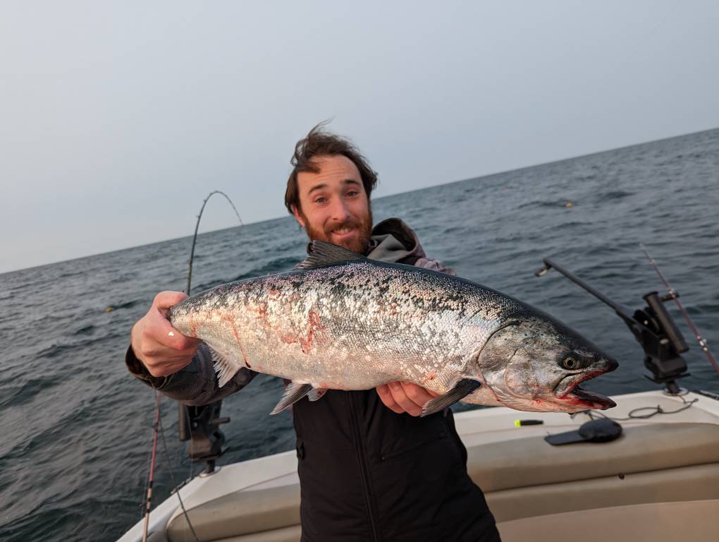 Aaron Nusbaum Posted May 18, 2023 Posted May 18, 2023 We trolled from 6 to about 10 am from 100 to 170 ft, spending most of our time around 130. There seemed to be a fierce current out of the north on top of the waves. We got one 8# king on a blue mixed veggies magnum 55ft down on a downrigger in 135 ft. Sent from my Pixel 6 Pro using Great Lakes Fisherman Mobile App 6