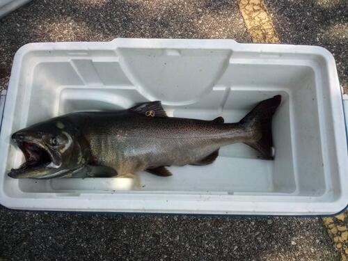 Fishing solo, had not been out for awhile went 1 for 2. Had a double but lost the second one when I couldn't get to the rod in time hoping to loosen the drag until I got the 1st one in. Lost a white fly and UV NBK SD. No other bites after that. Lots of boats but not to bad. Meant JDH at the cleaning station and saw 2MD out there fishing