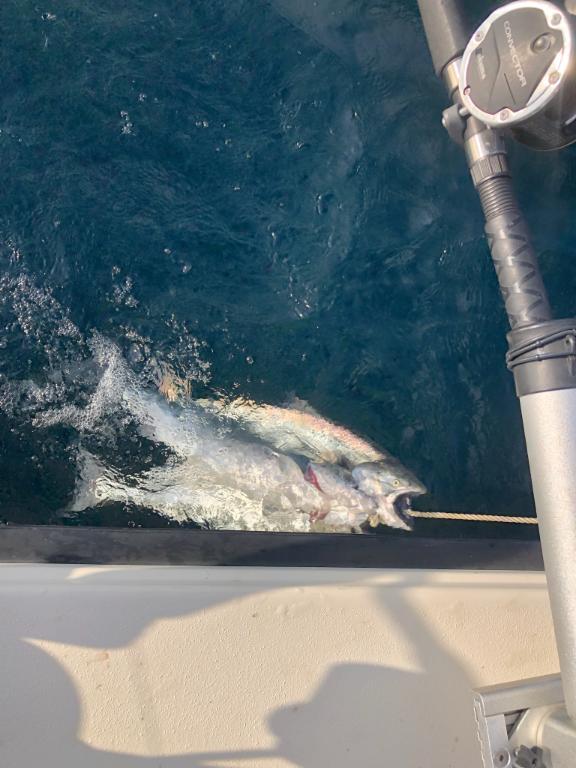 2MD Posted September 23, 2023 Posted September 23, 2023 trolled for only about an hour while bringing boat around from west olive to holland tonight too warm to try in close so buzzed out to 170fow and setup there absolutely insane marks on graph top to bottom ended up 2for3 on three year old chinook was a blast what worked was white paddle out 220 on deep diver and also the other deep diver out 200 and then the rigger down 106 with spoon 3