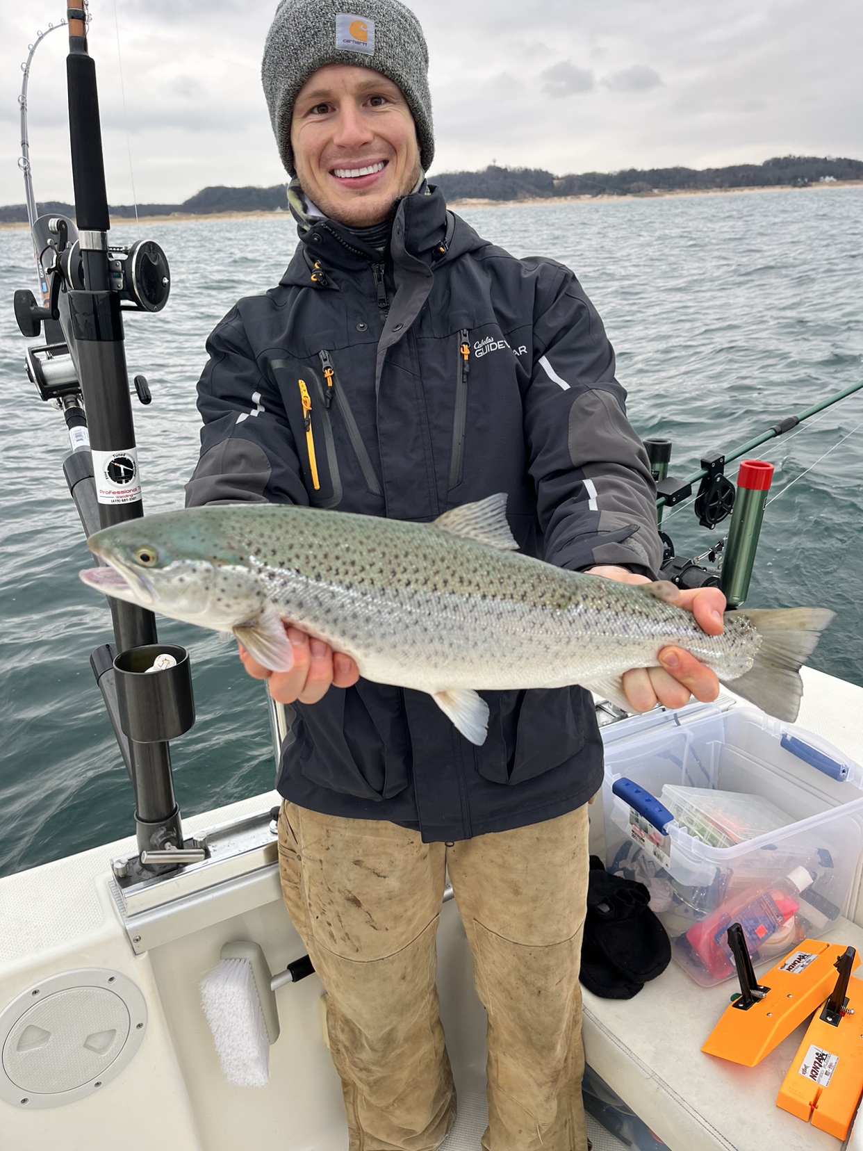 Copilottruman Posted December 31, 2023 Posted December 31, 2023 Started around 9am. Unfortunately it was 2-4’ waves so we just trolled around with one line till about 11am when it calmed down and we were able to fish all 6. In about 2 hours we went 2/2 on browns. No real marks near the piers but between 30-40 fow within half mile north and south of the piers there were tons of marks. Both came on UV DW SS spoons 5 colors. Used my new ninja boards which pull great but couldn’t really tell when a fish was on. All my short colors are Penn 320’s and I love them but they’re old and need servicing, does anyone know of a good place to send them? Trophy 1802 out of Holland 1