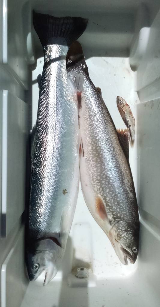 littleboat Posted June 11, 2024 Posted June 11, 2024 Fished solo, 80-150 fow. 2 for 2. Small lake trout 3# and a 8.18# steelhead. Most bait and fish were between 120-135fow. Both fish were loaded with bait. 1- lake trout, 3#, 11:33am, 5 eyes lure. on DR, down 100, in 140fow, 2.6 sog. S trl, ball temp 43.6. Alot of big marks down low. I was hoping for something bigger with all those marks. He spit his dinner up during my xfer to the cooler. 2-steelhead 8.18#, 11:57am, burnt bread on a slider on DR, rigger was down 98 in 130 fow, on a S trl.. Nice to see that gleam of the Steelie.Current was all over the place down deep. Lake was flat. No bites earlier in the am for me.When I went to pull my boat out, I noticed one of my bunkboards had partially collapsed. This is going to be quite a challenge to repair. Not what I was hoping for at the end of the day. Sent from my Z5156CC using Great Lakes Fisherman mobile app 4