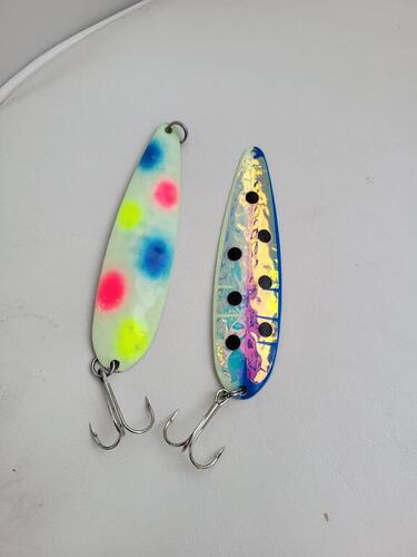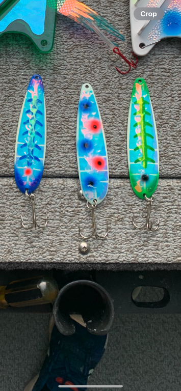 BigHam12 Posted July 16, 2024 Posted July 16, 2024 Haha, here’s a picture of the moonshine spoons: Blue Jeans, Five Eyes, and Green Jeans. You can look them up on fishusa or Captain chuck’s II websites. Most local tackle shops along the lakeshore will carry Moonshine and/or Dreamweaver products, just say the names and they’ll know what you’re talking about. Tomorrow morning looks like it has the best conditions potential to get out there, but we’re going through a windy stretch this week.