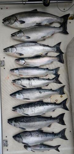 Lilskatertoo Posted July 30, 2024 Posted July 30, 2024 Easy 2 man limit this morning 90-120 FOW east of R4 up north to N10 from 630-10am. Only one laker bite. Kept it around 3mph surfing with the waves. Ran just 2-4 lines, pulled them and made the run again. Went through the storm on the way home to help clean the blood off the deck. Finished 11/18 with a couple kings (14 and 9.5lb), a couple SH, a pink and the rest coho. SWR missed 4 in a row due to slack so we had to swap it for a normal DR...that was a first. Mag spoons on DRs down 50-65' got most of the fish (sand burr and ras carbon). Meat rig wire dipsies out 120-150'ish got smoked a couple times later in the morning but we lost both fish. Anyone else fishing Chicago? 1