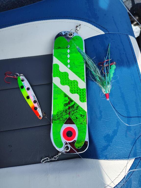 jdh Posted August 22, 2024 Posted August 22, 2024 (edited) Fished solo straight out in 240+ fow. Found a scum line and temp break out there and chased in and out of it for about an hour. Managed to go 6/8 and limit out with 5 coho and a pink. Damage was done using 3 color, 5 color with spoons, and downrigger down 50 with a green flasher fly. Edited August 22, 2024 by jdh 3