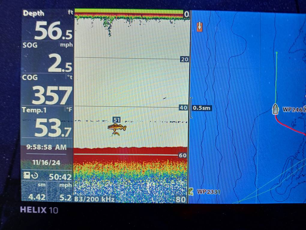 littleboat Posted November 16, 2024 Posted November 16, 2024 Fished solo, 3hrs, went 4 for 6, all small kings, released them to grow for next season. Worked water 50-60ft off harbor north, west and south. Had to check the lines alot because of the small jacks.Waves were building the farther I went out. I caught them on std yeck crazy sweet corn and MS bloody nose std. On north and south trolls. Surface temp was 53.7. Bottom temp was 44-45. Ran the ball about 5 feet off the bottom (50-53°). Used a 6C and 8C to the sides. Ran spoons and a wonderbread jplug. Bait was around but only in a few spots. Installed a couple of electric DRs, so I just had to try them out. I didn't see any other boats out.It's been over a month since I have been out. Sent from my SM-A156U1 using Great Lakes Fisherman Mobile App 8