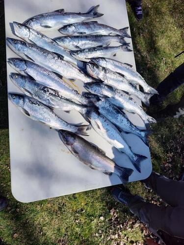 jdh Posted April 13 Posted April 13 Fished again today with 3 in the boat. Got to the launch around 9:45 and noticed there were a few trailers in the lot. Ok, the most trailers I've seen at that launch in a while. Interesting. Got the boat setup and launched and finally started fishing around 10:30. Saw several boats coming back up the channel with claims of limits - they were north, they were south, etc. Well, at the pier heads there were double the number of boats south, so we went north. Trolled between 20 and 40 fow heading north with 2 fish to show for it by 12:00. Between 12 and 1, the fishing went nuts. Ended up 17/24. Coho dodgers on divers back 17-25 were hottest rods. Next hottest were thin fish any color 45-65 feet back of the boards. And third hottest were 1 and 3 color leadcores with mini streaks spoons. All lines caught fish, and we caught two more while clearing lines after getting our limit. Love the days where everything cooperates - including the fish. 7 1