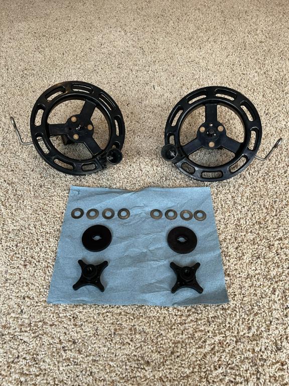 zgrinder on Fin Warrior Posted Saturday at 10:12 PM Posted Saturday at 10:12 PM I have two Big John planer reels that were last on the boat in 2008 and since been stored on my racks of gear in the basement. Time to give them a new home. Pics show the reels disassembled, all the washers and parts are there. No rust and minimal where. The old lubricant has been removed from the tension screw mechanism. Asking $240 for the pair plus shipping.